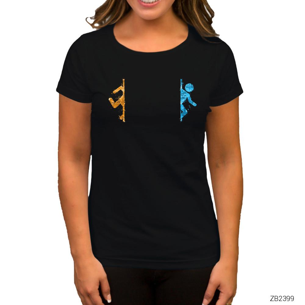 Portal 2 Co-Op 2 Siyah Kadın Tişört