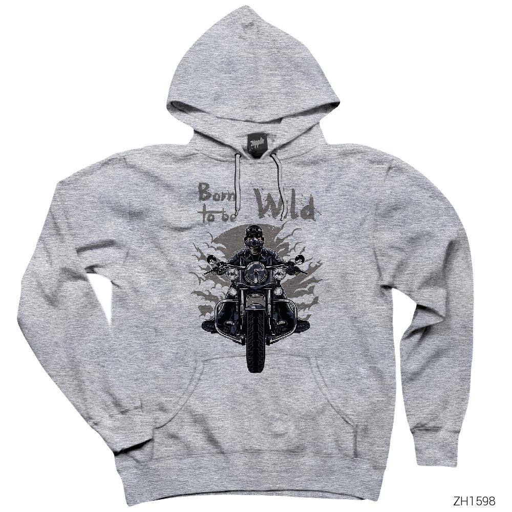 Riders Born To Be Wild Gri Kapşonlu Sweatshirt Hoodie