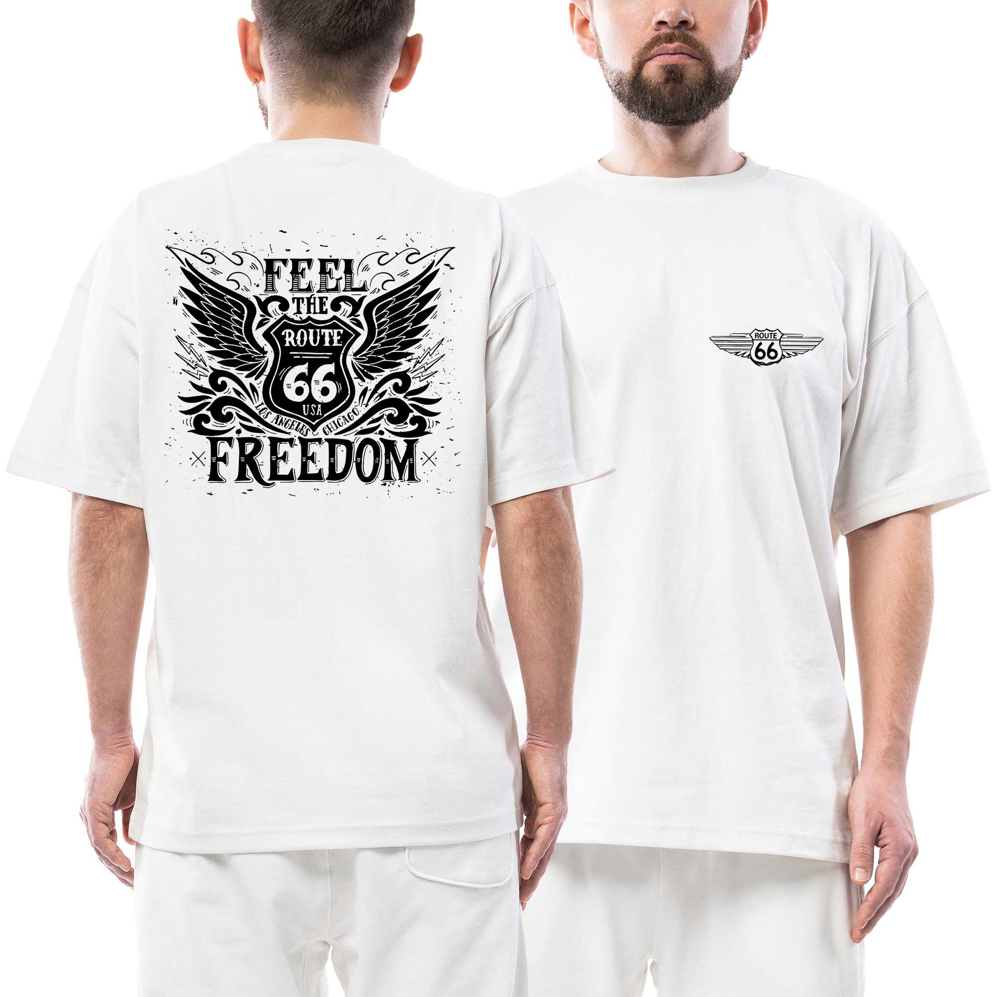 Route66 LA Ön Arka Baskılı Beyaz Oversize Tişört