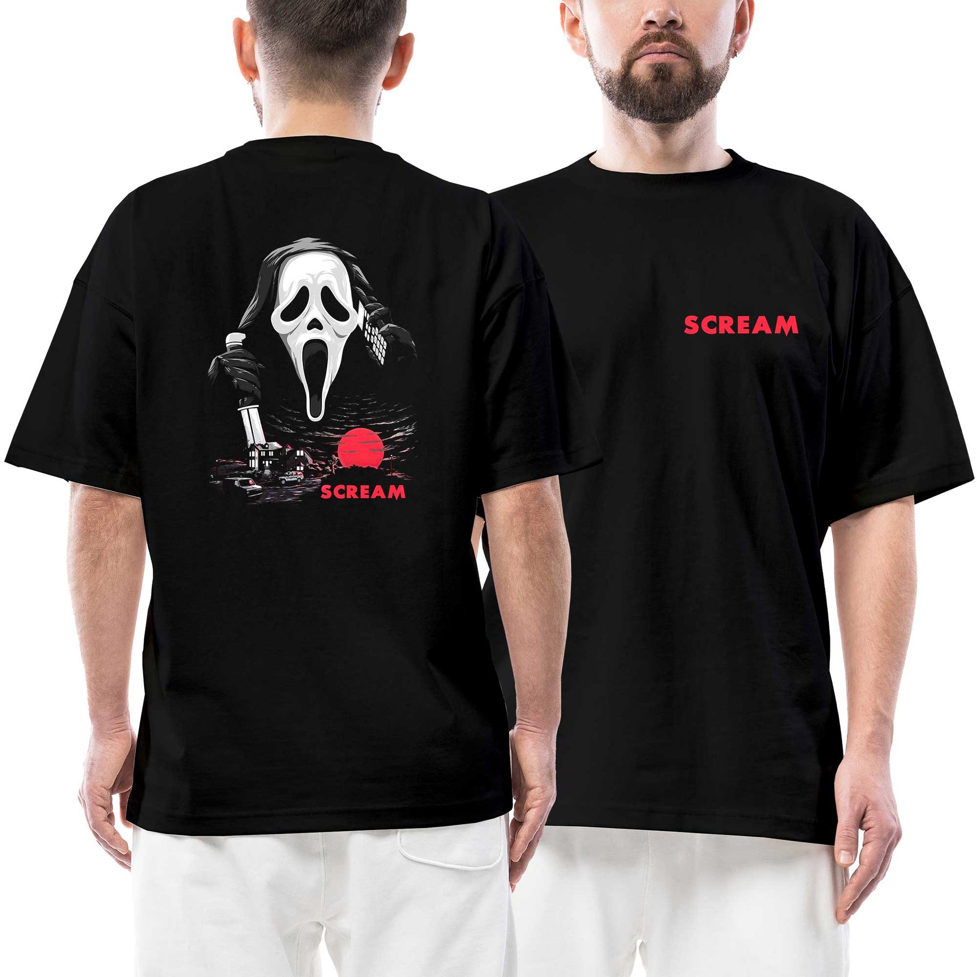 Scream Town Ön Arka Baskılı Siyah Oversize Tişört