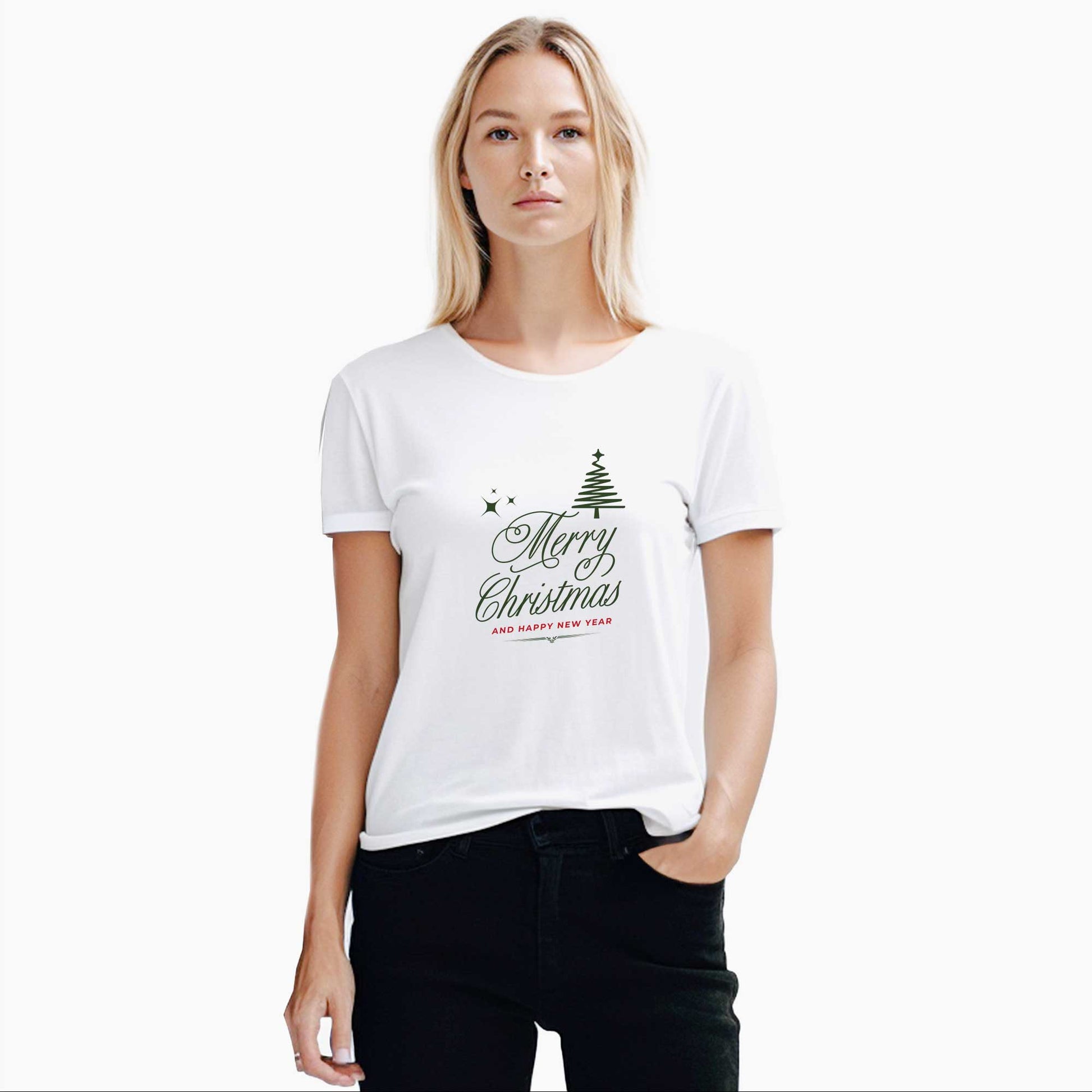 Simple Mery Christmas Beyaz Kadın Tişört