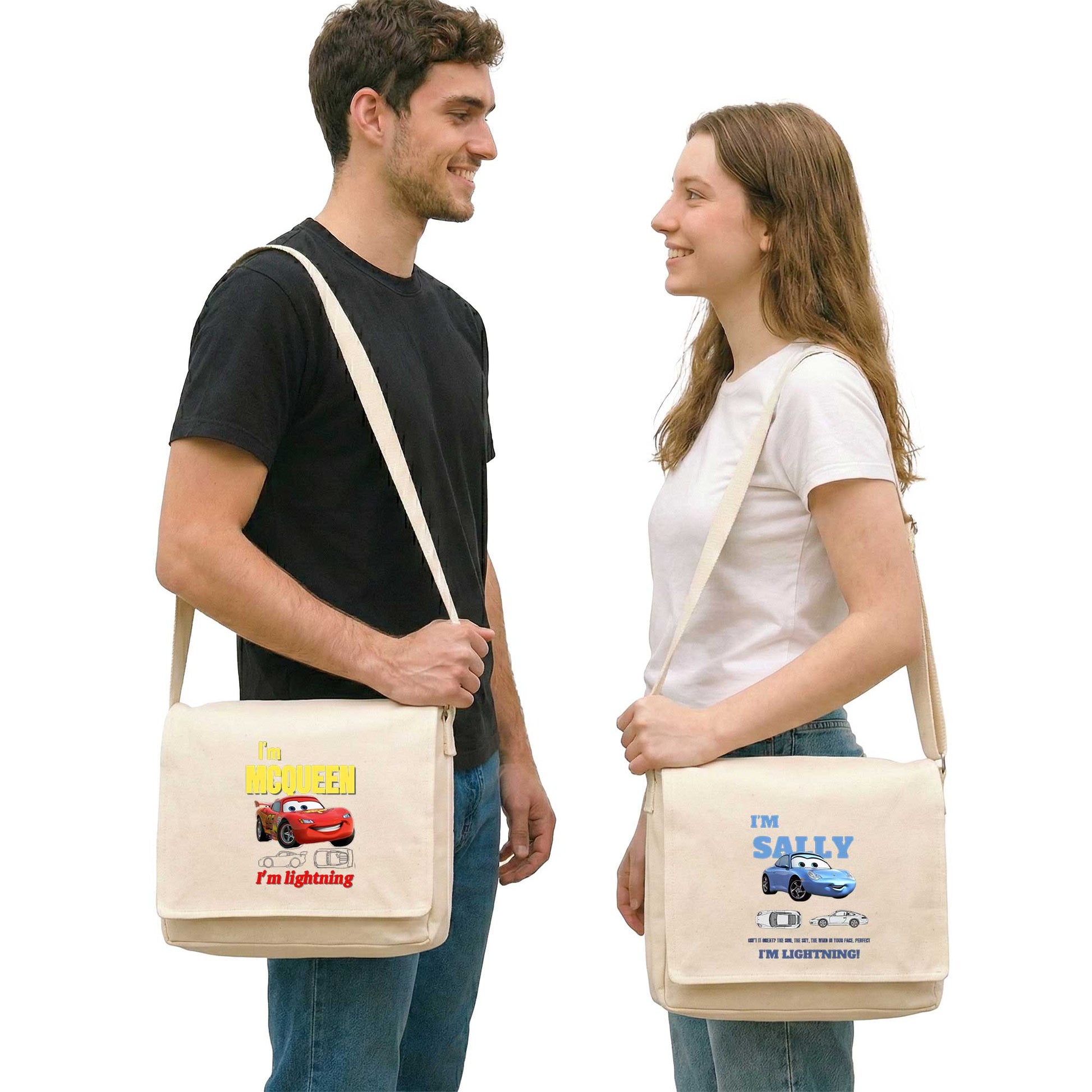 Şimşek Mcqueen and Sally Sevgili Çift Postacı Çantası Kanvas