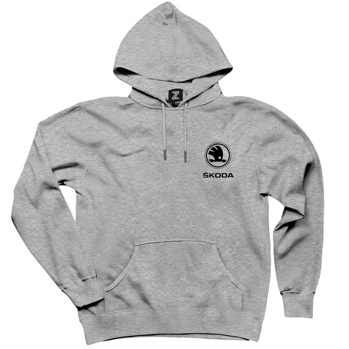 Skoda Logo Gri Kapşonlu Sweatshirt Hoodie