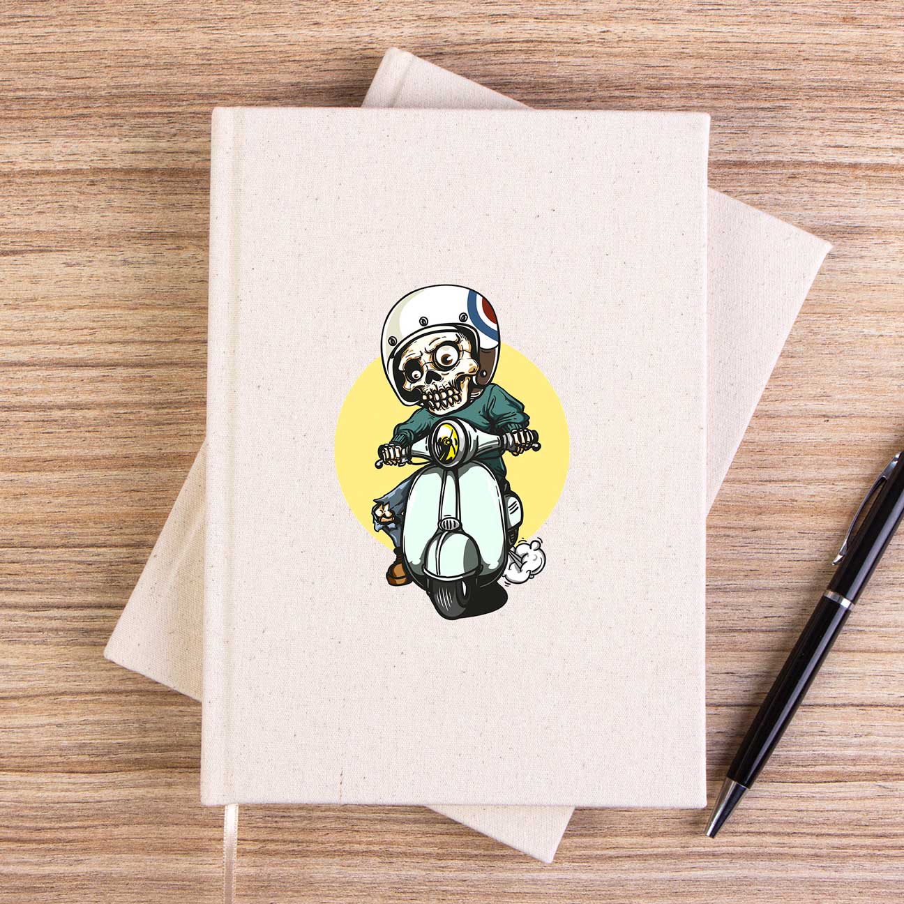 Skull Scooter Rider Çizgisiz Kanvas Defter