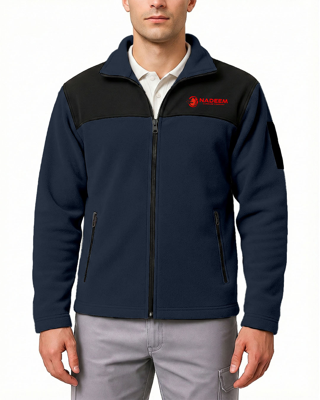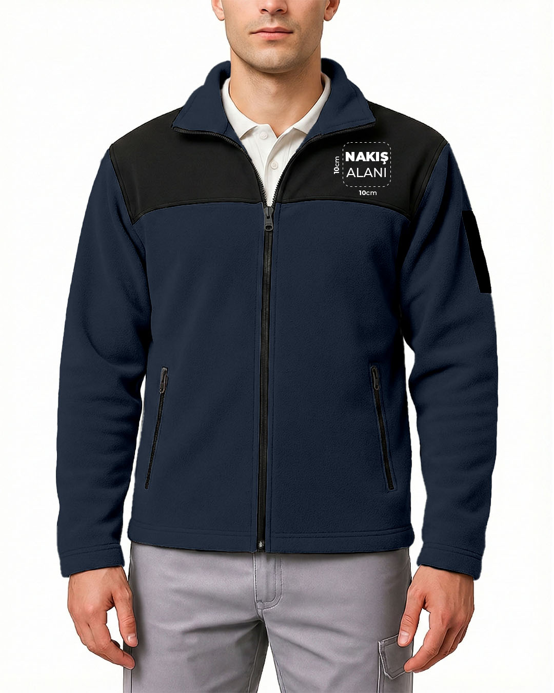 Softshell Fermuarlı Polar Baskılı Nakışlı Lacivert Toptan - Lacivert