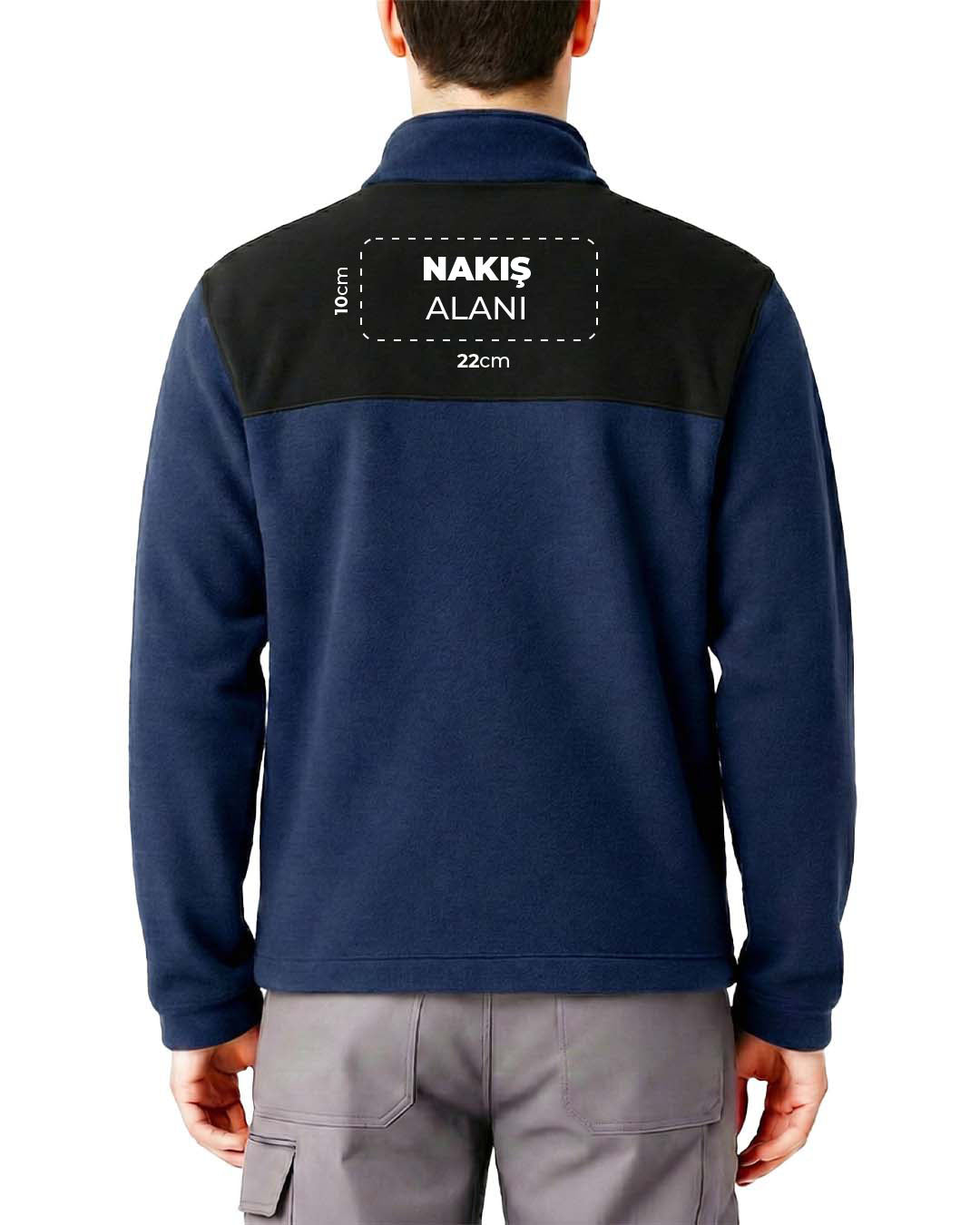 Softshell Fermuarlı Polar Baskılı Nakışlı Mavi Toptan - Mavi