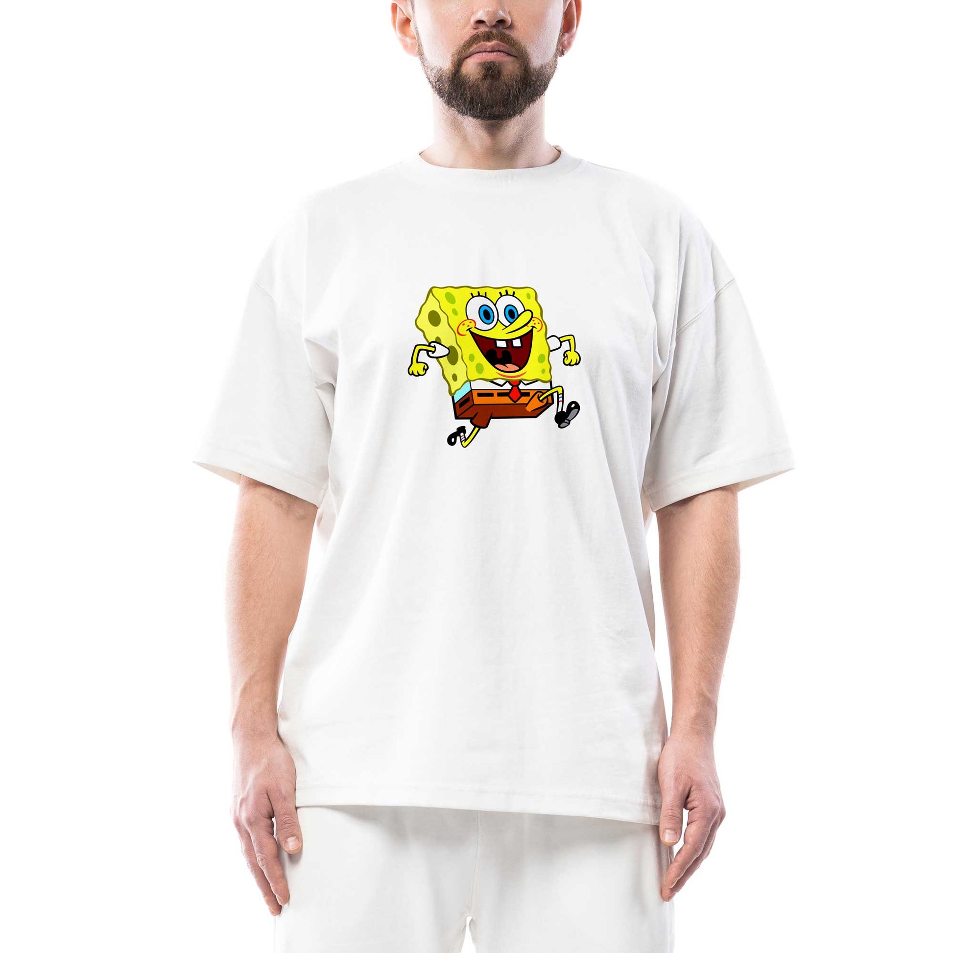 Spongebob Happy Oversize Beyaz Tişört