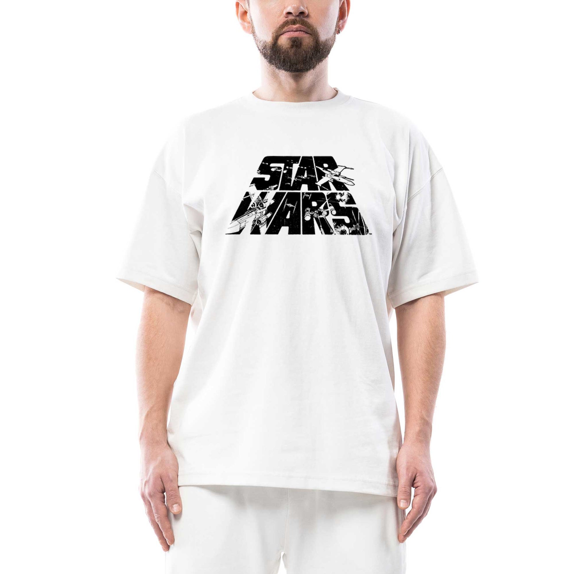 Star Wars Logo 3 Oversize Beyaz Tişört