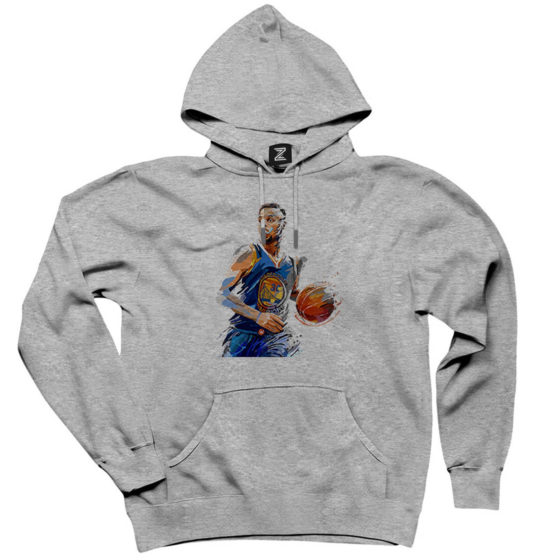 Stephen Curry Blue Silhouette Gri Kapşonlu Sweatshirt Hoodie
