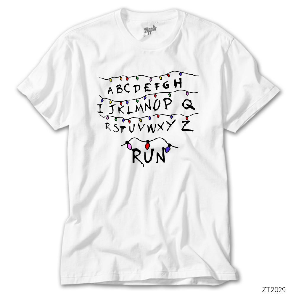 Stranger Things Christmas Lights Run Beyaz Tişört