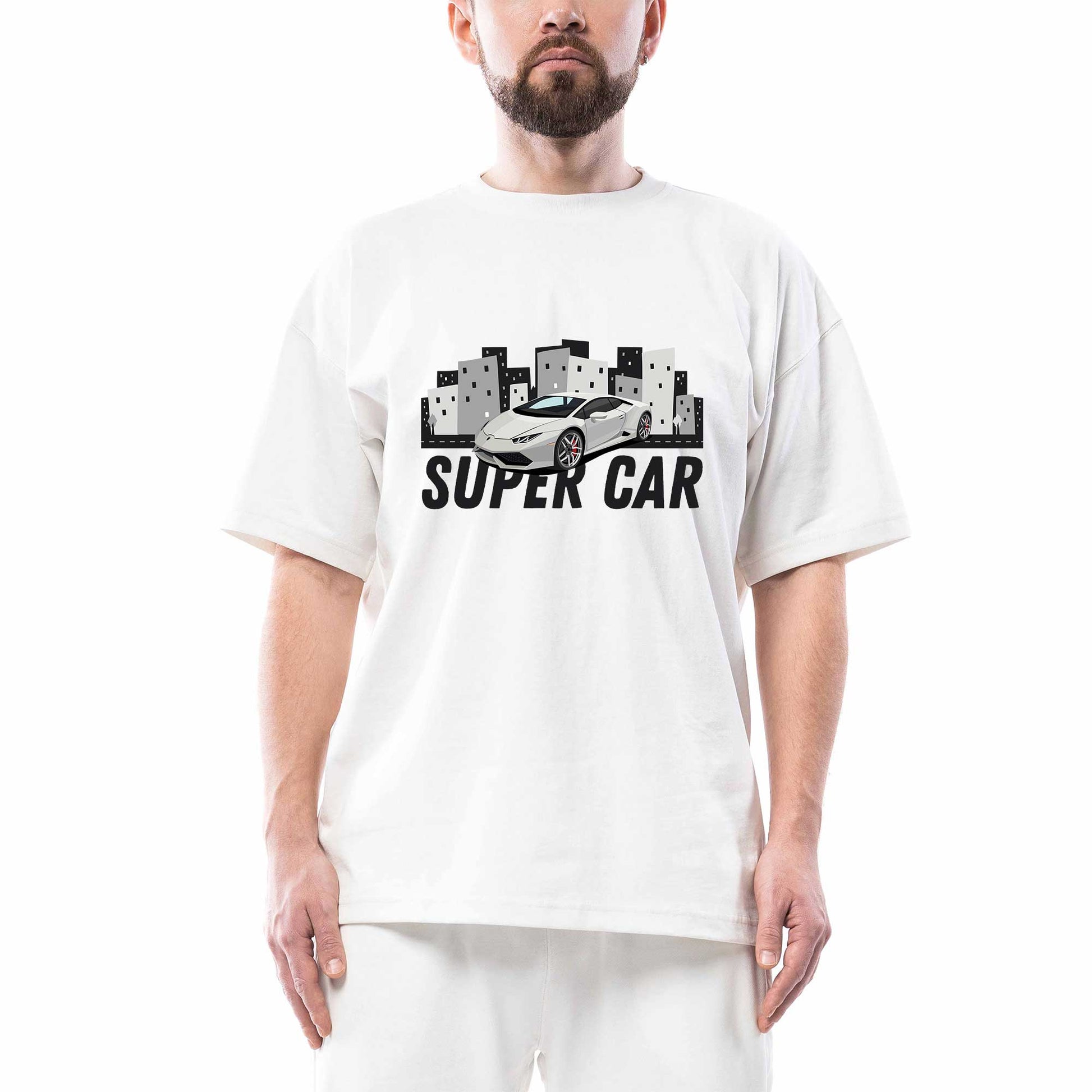 Süper Car Lamborghini Oversize Beyaz Tişört