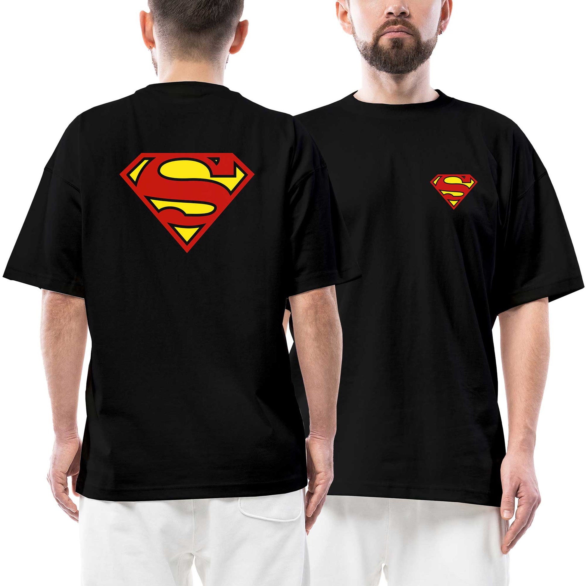 Superman Klasik Logo Ön Arka Baskılı Siyah Oversize Tişört