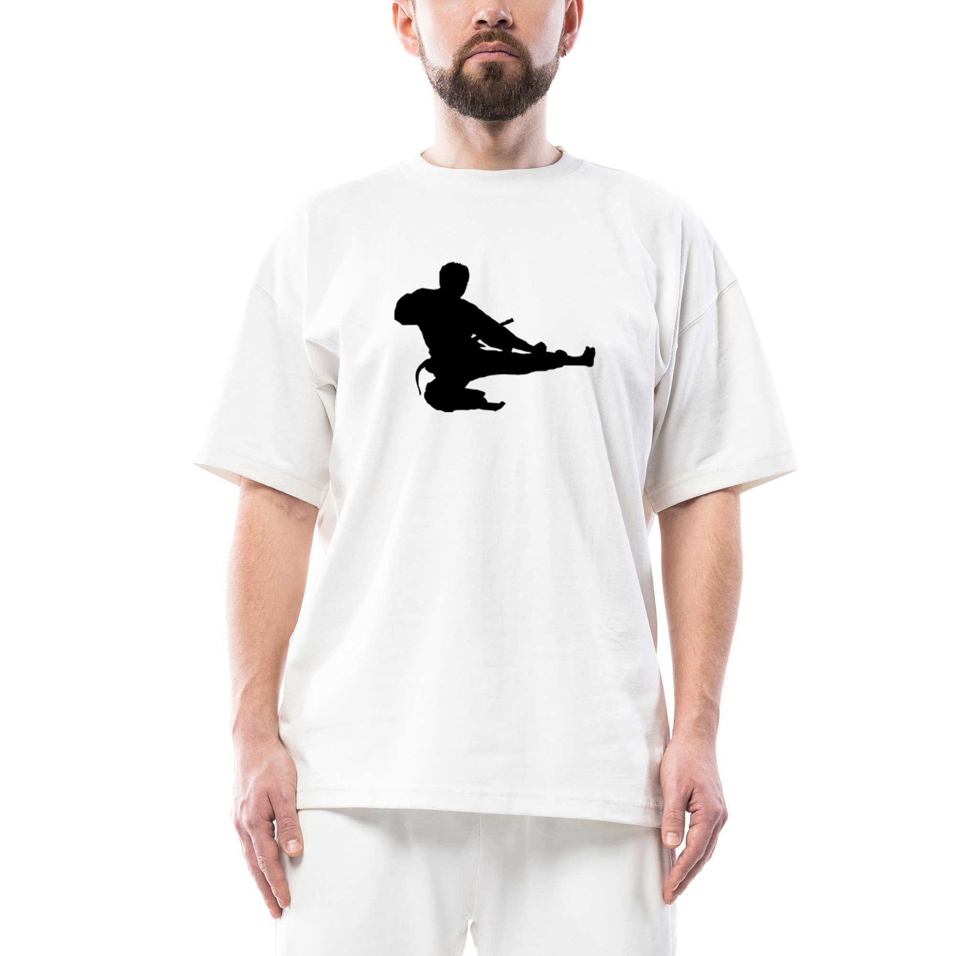 Taekwondo Karate Silhouette Oversize Beyaz Tişört