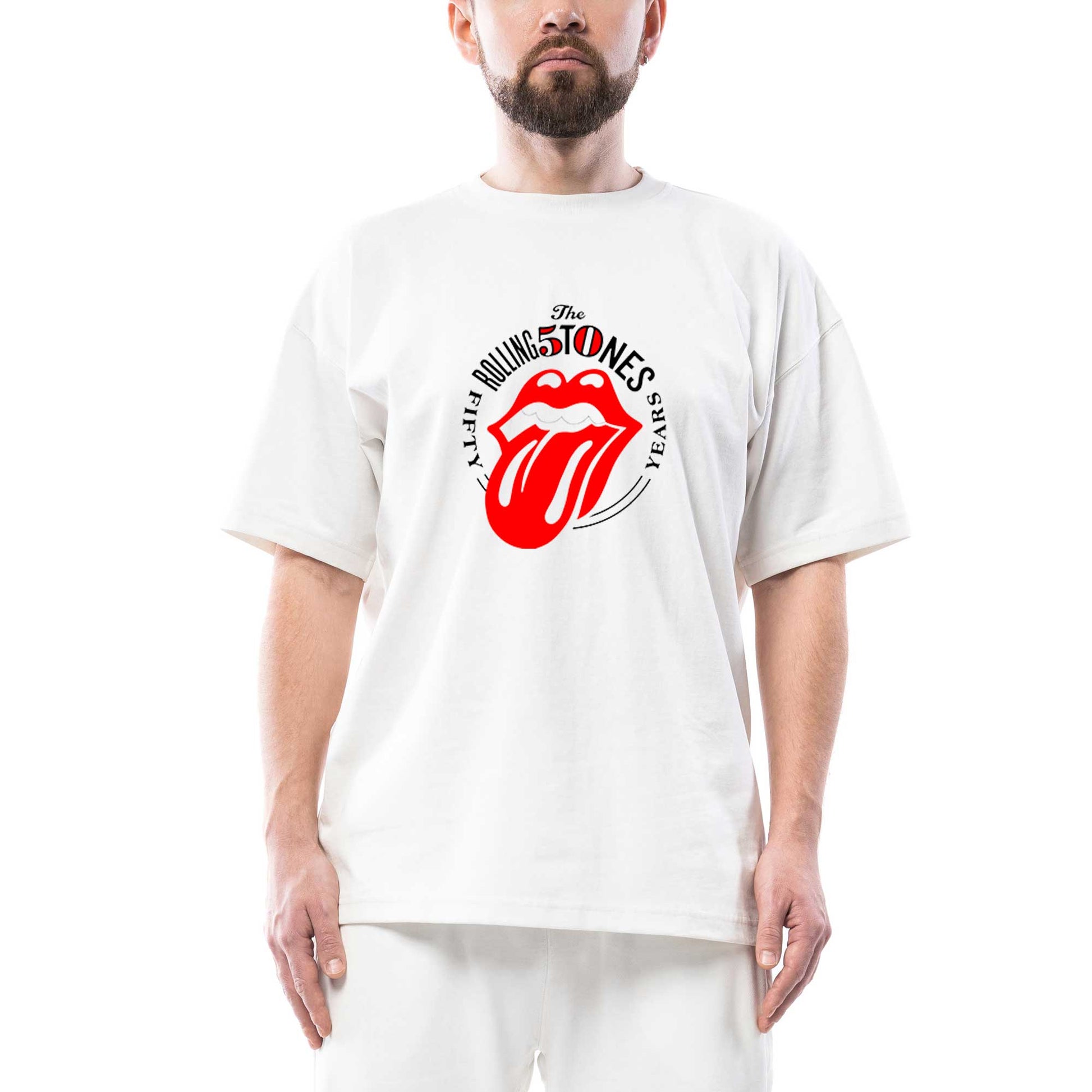 The Rolling Stones 50 Years Oversize Beyaz Tişört