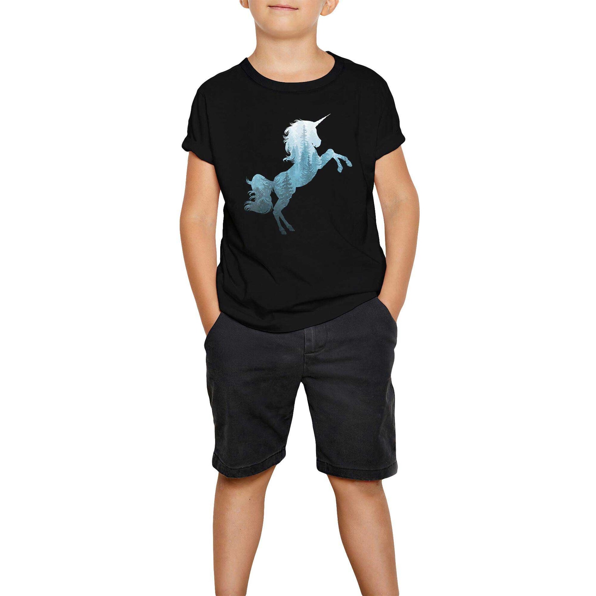 Unicorn Orman Siyah Çocuk Tişört